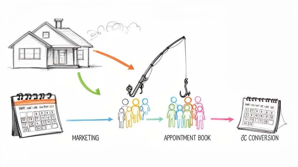 This is the gold standard for busy contractors who want a hands-off approach. With this model, you’re not just buying a name and a number; you're buying a qualified, booked appointment that just shows up on your calendar. A team of specialists handles all the grunt work—the cold calls, the endless follow-ups, and the vetting process.