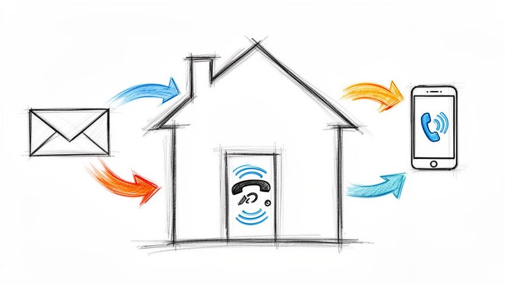 This data-driven approach is especially powerful for channels that many businesses write off, like direct mail. While digital gets all the attention, direct mail has an average response rate of a whopping 4.4%, which absolutely crushes email's dismal 0.12%. Even better, letters in envelopes boast an incredible 8.38% response rate. For a home service company, where one mailer can trigger a call for a high-ticket repair, that difference is game-changing. It's a prime channel for generating the kind of high-intent calls that a service like Phone Staffer is built to convert. You can see more stats on direct mail performance from LettrLabs and understand why it's far from dead.