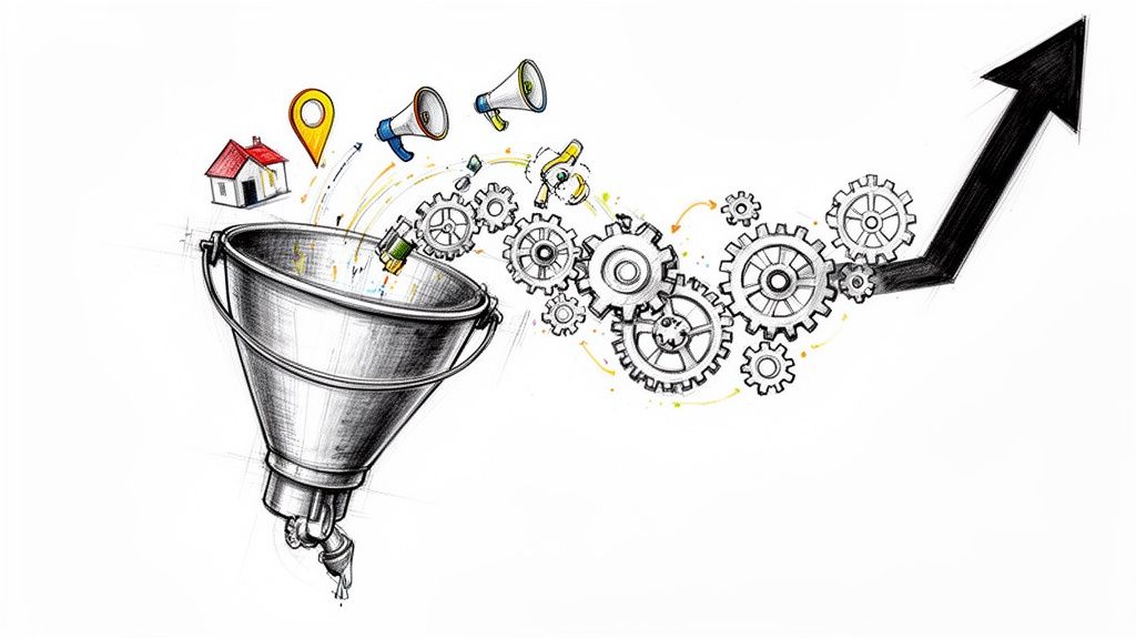 If you feel like you're constantly pouring leads into a leaky bucket, it's time to build a system that brings the right customers to you, consistently. Don't think of this as a random list of marketing tasks. Think of it as building an engine. Each part has a job, and when they all work together, they create a reliable, predictable flow of high-quality jobs for your business.