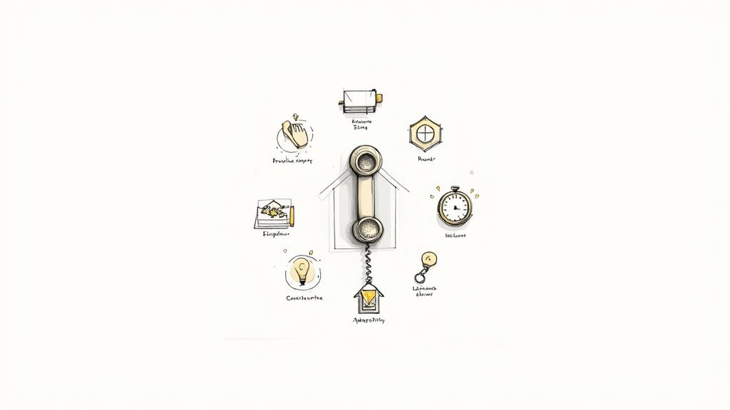 This skill set is crucial when a customer is panicking or frustrated. A composed response reassures them that help is on the way and that they are in capable hands. For instance, calmly walking a homeowner through shutting off their main water valve during a leak not only prevents further damage but also builds immense trust. Mastering these telephone customer service skills ensures that even the most challenging interactions reinforce your company’s reputation for professionalism and dependability.