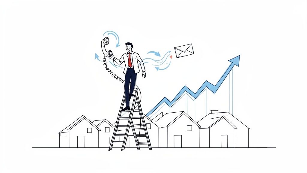 Cold calling is the classic outbound play, and for home service businesses, it’s still a powerhouse. Done right, a simple phone call can turn a name on a list into a booked appointment faster than almost any other method. In fact, a surprising 69% of buyers have accepted a cold call from a new provider in the last year, proving that a well-aimed phone call is far from dead.